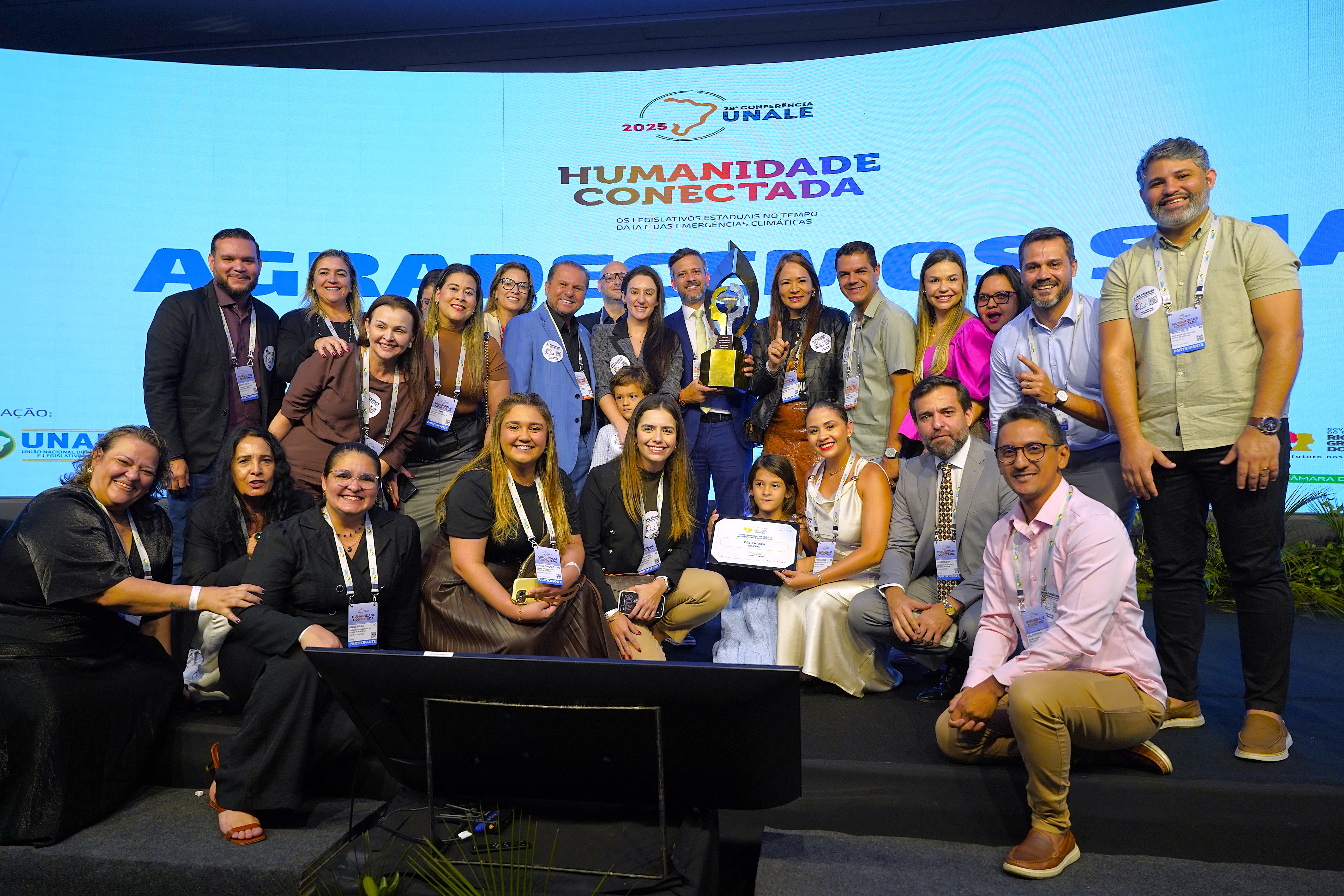 Delegação rondoniense recebe o prêmio no palco (Foto: Rafael Oliveira I Secom ALE/RO)